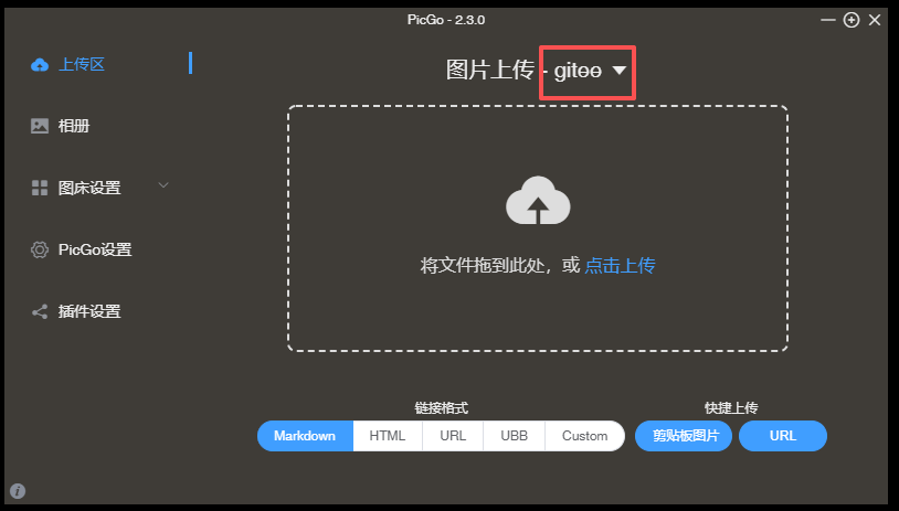 4.在配置完成后,即可在上传区选择 gitee 上传图片