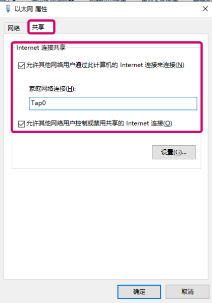 将物理网卡的网络状态分享给虚拟网卡 Tap0