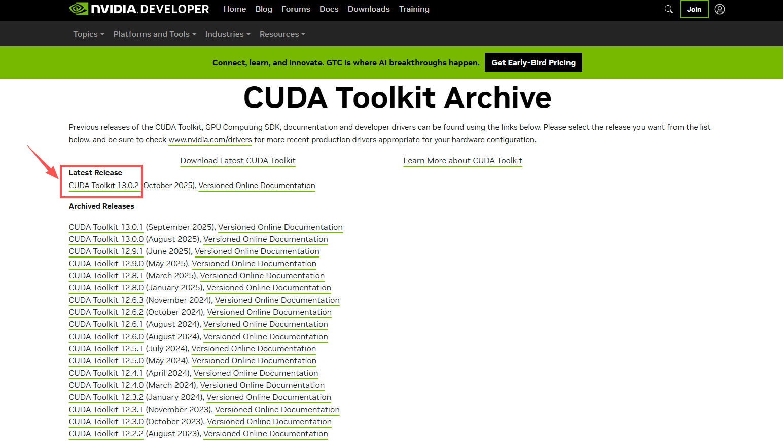 CUDA 可以前往 NVIDIA 官网下载安装: