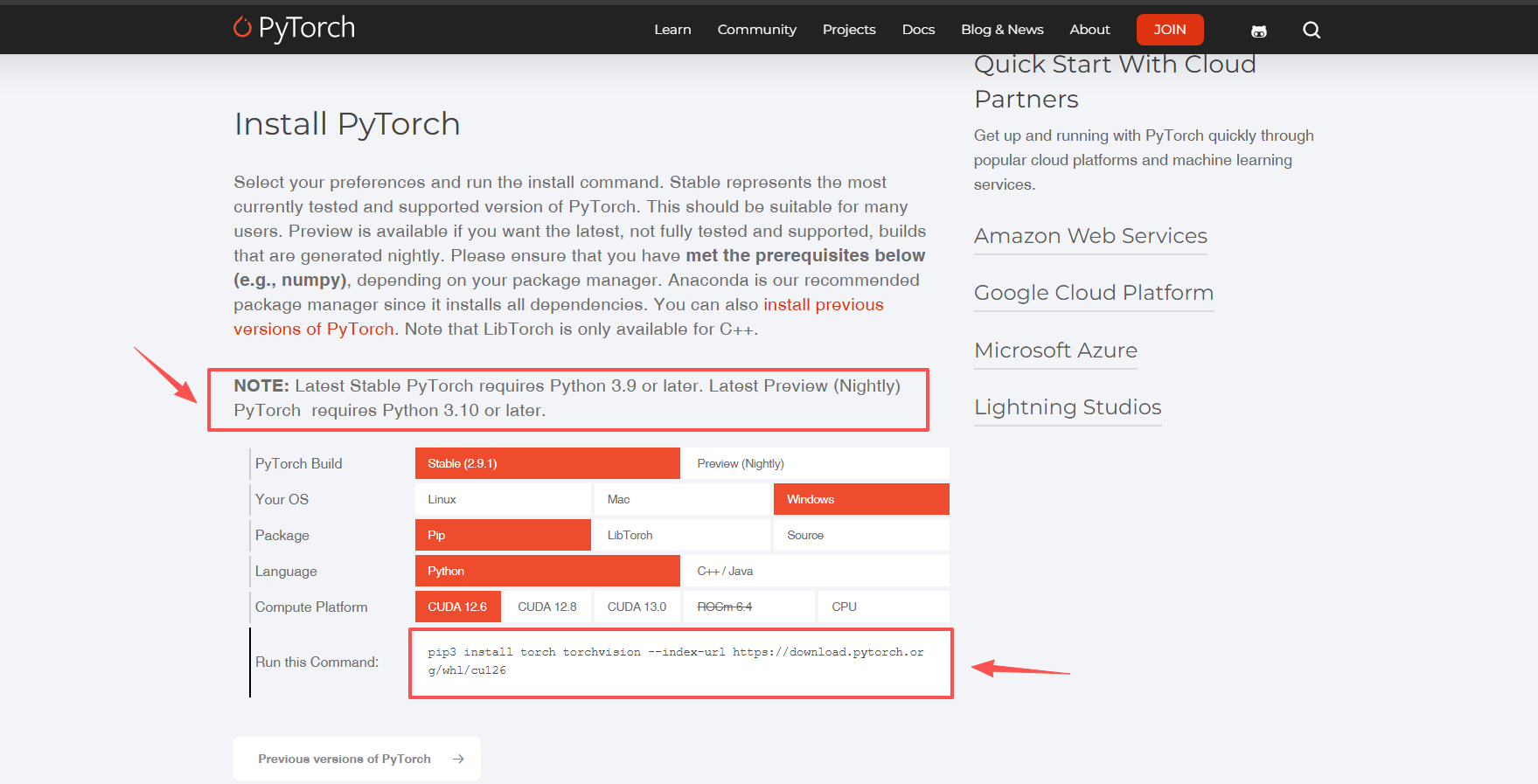 PyTroch 的安装需要 Python 3.9 以上的版本,如果是 Preview 版本,则需要 Python 3.10 以上的版本。