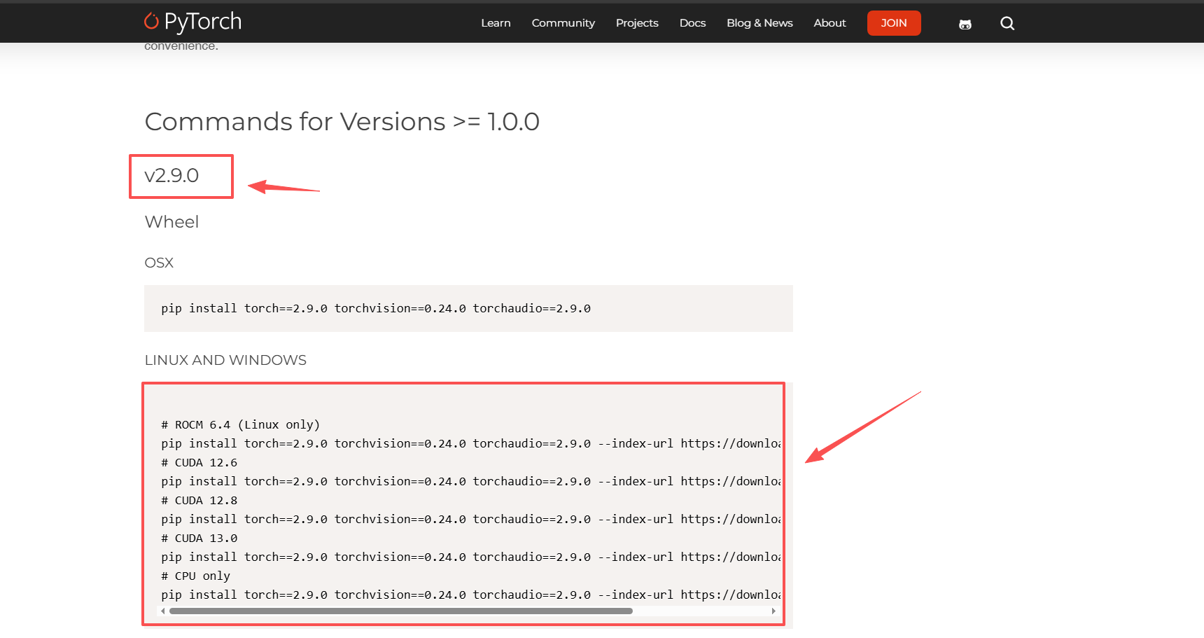 最后,重点提醒,PyTroch 官方给出的部署命令中的安装版本是经过测试的安装版本,在安装时要确保所安装的软件版本与官方一致,以避免运行失败的问题。