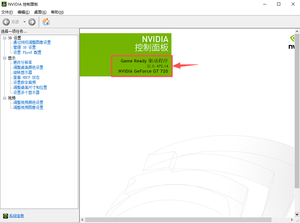 主机上的 N 卡驱动信息可在 NVIDIA 控制面板中查看: