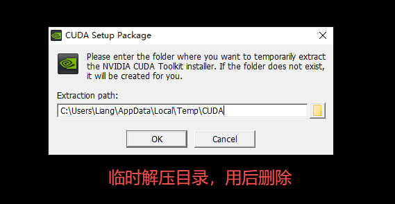 开始安装时,安装程序会要求输入一个地址,这个是临时解压地址,在安装结束后会自动删除(默认情况下直接点击确定即可)。