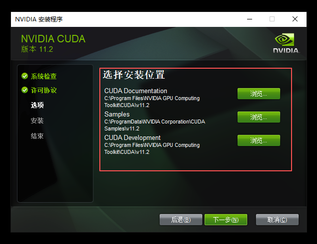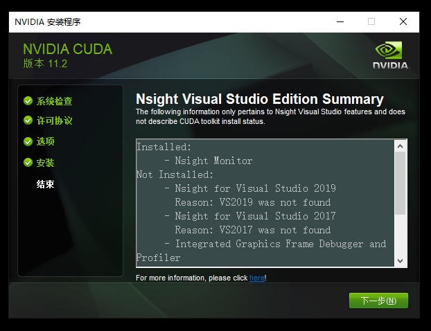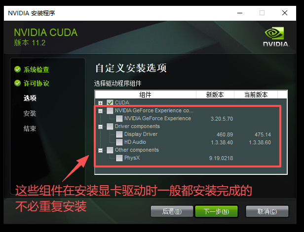 同时,注意去除勾选 CUDA 项里面的 Visual Studio Integration,这个是 Visual Studio 的插件,一般我们不需要。