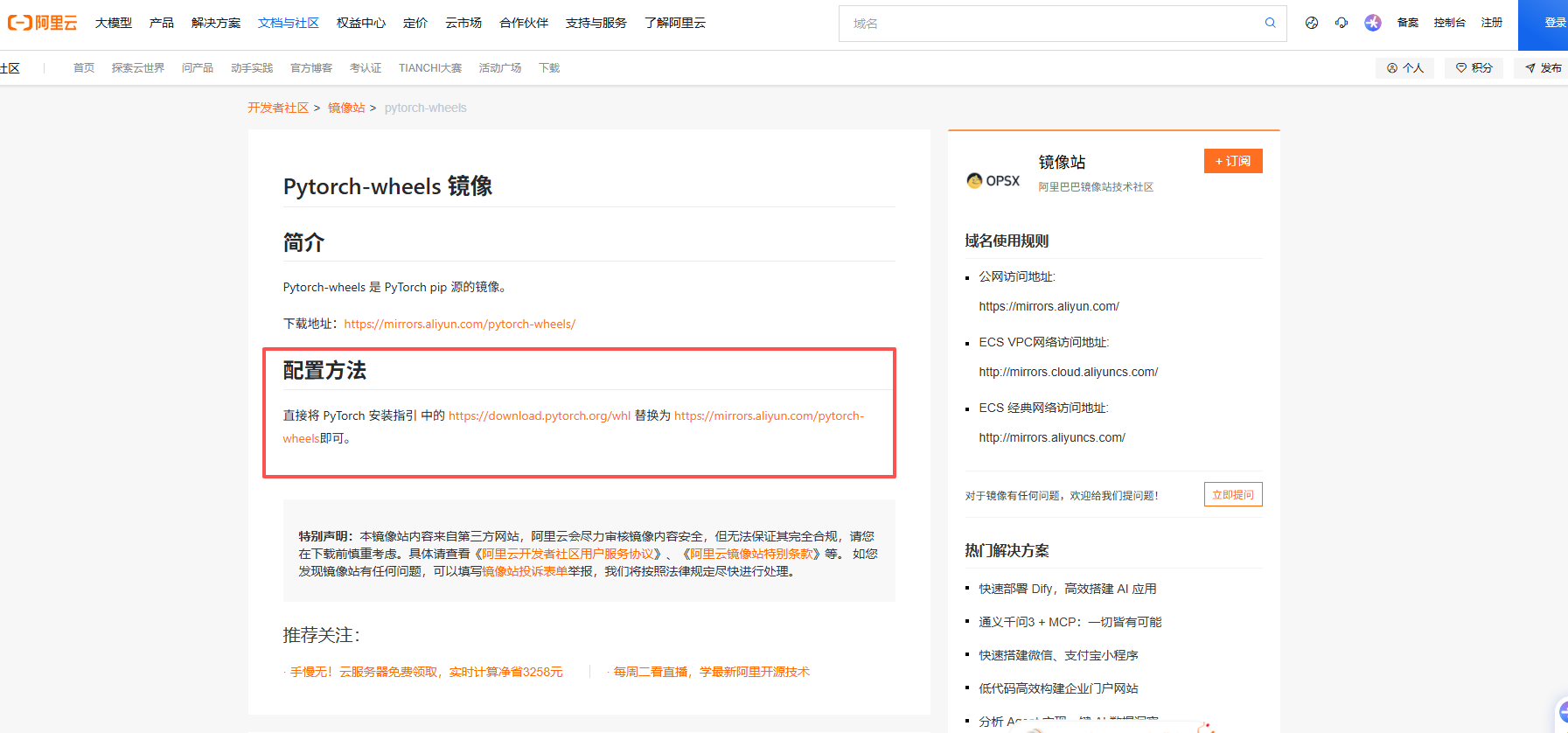 阿里云开源镜像站提供大部分 Pytorch Wheels 的镜像下载,对应的连接如下: