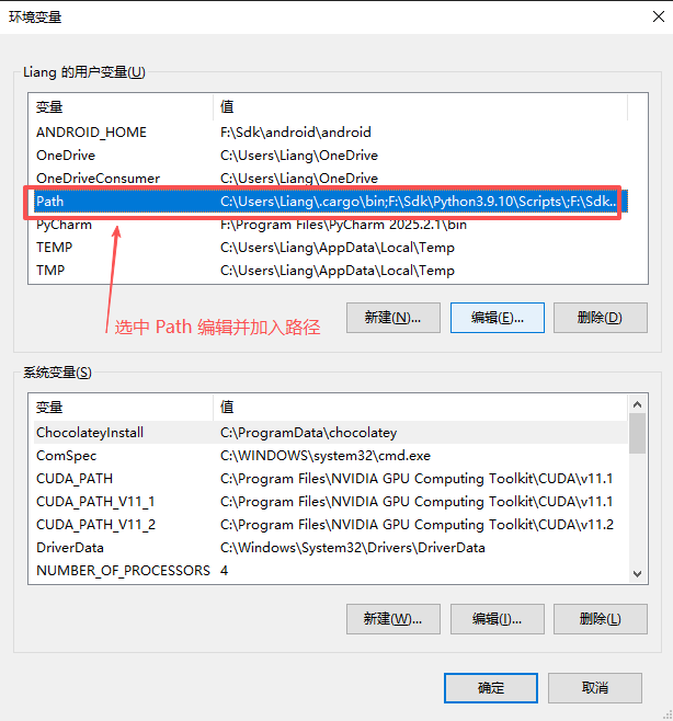 Windows 系统可以通过按下 Win + S 快捷键打开搜索,输入环境变量来跳转到设置弹窗,完成上述配置。