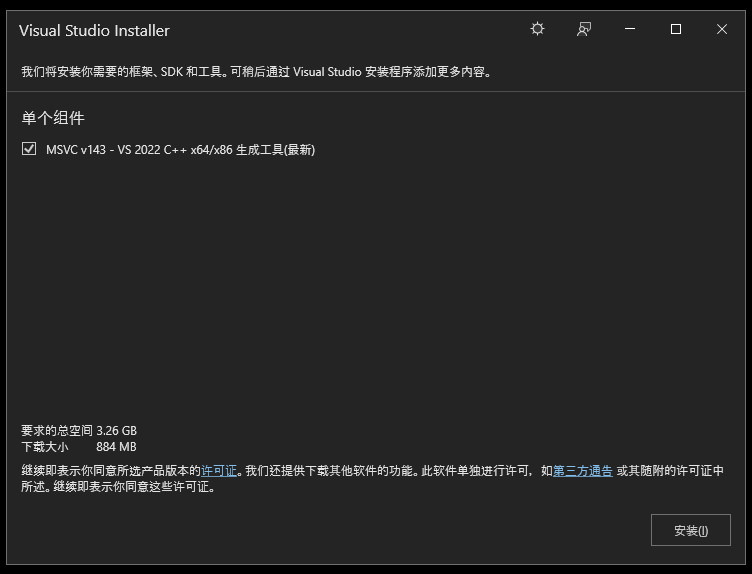 一般来说,推荐通过安装 Visual Studio 来间接安装 MSVC,以及其他配置依赖库。