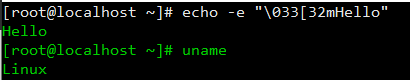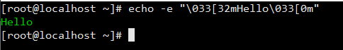 比如执行 echo -e "\033[32mHello" 会导致整个终端变为绿色。
