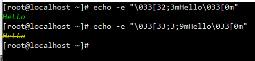 比如执行 echo -e "\033[32mHello\033[0m",此时的输出就会正常。